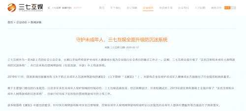 未成年人游戲時長不得超過1.5小時 三七互娛防沉迷系統(tǒng)全面升級
