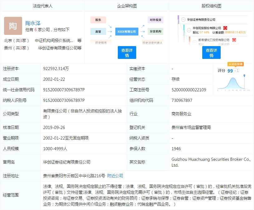 天眼查數(shù)據(jù)顯示,華創(chuàng)證券的運(yùn)營主體為華創(chuàng)證券有限責(zé)任公司,公司成立于2002年1月,注冊資本約92億,公司經(jīng)營范圍包括證券承銷與保薦、證券自營、證券資產(chǎn)管理等。