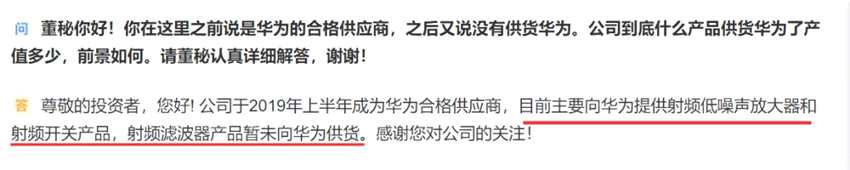 “濾波器產(chǎn)品暫未向華為供貨”