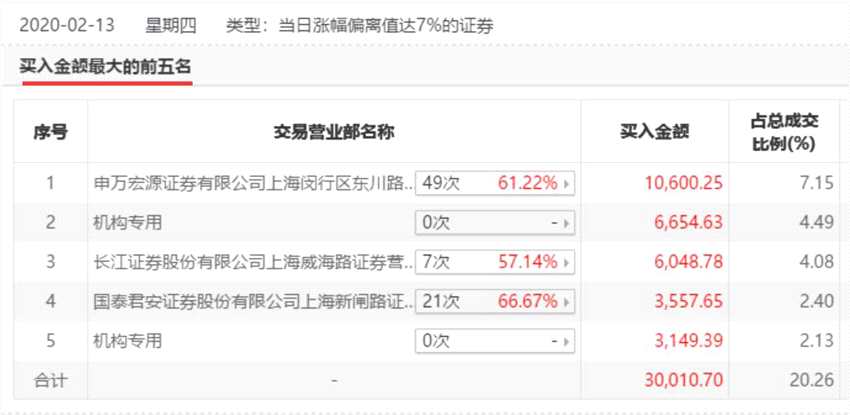 2月13日,卓勝微龍虎榜前五大買入席位