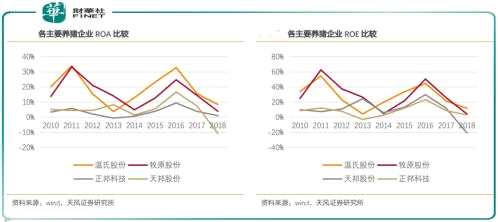 ROE方面,溫氏股份2010-2018年平均值為27.53%,牧原股份28.80%,正邦科技10.33%,天邦股份8.40%。