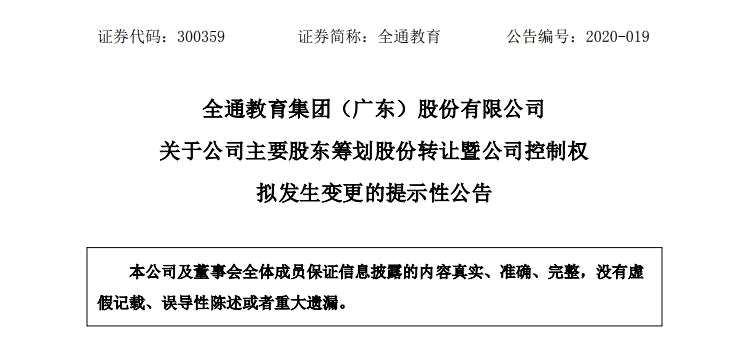 全通教育實控人近兩年都在積極尋找股份接盤方。