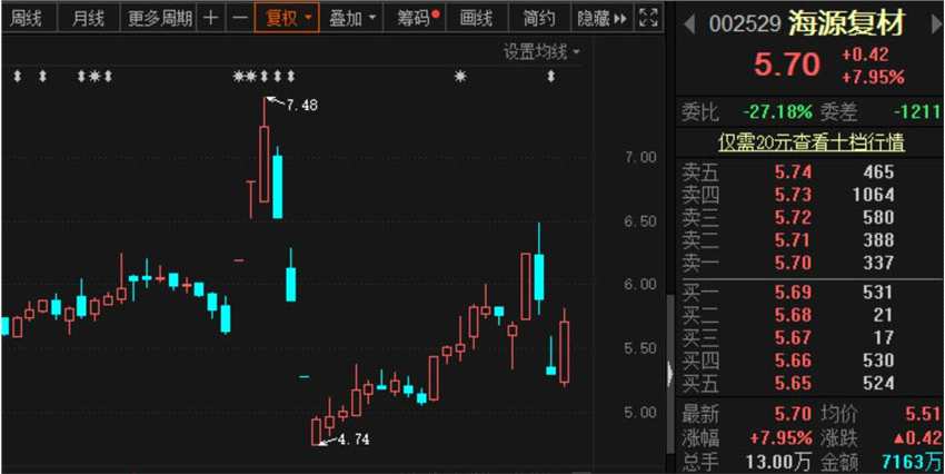 據(jù)公告顯示,海源復(fù)材本次實(shí)控權(quán)轉(zhuǎn)讓交易擬確定的標(biāo)的股份每股轉(zhuǎn)讓價(jià)格為9.62元,總價(jià)5.5億元。而截至3月2日收盤,海源復(fù)材股價(jià)報(bào)5.7元/股。