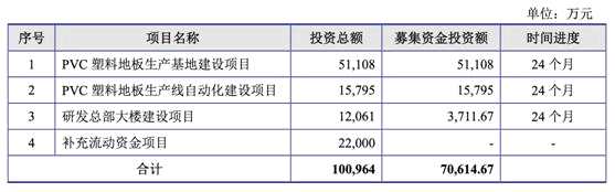 其中,5.11億元用于PVC塑料地板生產(chǎn)基地建設(shè)項目,1.58億元用于PVC塑料地板生產(chǎn)線自動化建設(shè)項目,3711.67萬元用于研發(fā)總部大樓建設(shè)項目。