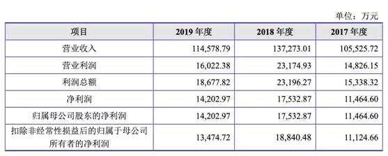 整體來看,近三年,愛麗家居業(yè)績呈現(xiàn)先上升后下降的趨勢。招股說明書顯示,2017年至2019年,愛麗家居實現(xiàn)營業(yè)收入10.55億元、13.73億元、11.46億元;實現(xiàn)歸屬母公司股東的凈利潤1.15億元、1.74億元、1.42億元;實現(xiàn)扣除非經(jīng)常性損益后的歸屬于母公司所有者的凈利潤1.11億元、1.88億元、1.35億元;經(jīng)營活動產(chǎn)生的現(xiàn)金流量凈額分別為1.58億元、3.15億元、1.98億元。