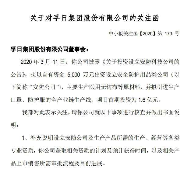 孚日股份擬引進口罩生產線收關注函:是否透露內幕信息