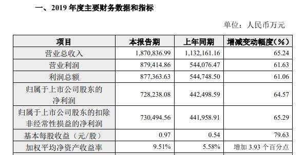 據(jù)快報披露,2019年招商證券實(shí)現(xiàn)營業(yè)收入187.08億元,較上年增長65.24%;實(shí)現(xiàn)歸屬于上市公司股東的凈利潤72.82億元,較上年增長64.57%。