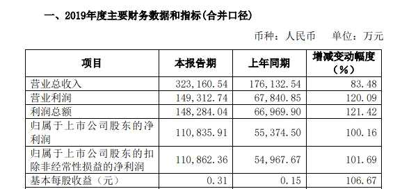 3月11日晚,華安證券(600909)公布2019年業(yè)績快報稱,2019年公司實(shí)現(xiàn)營業(yè)收入32.32億元,較2018年增長83.48%;實(shí)現(xiàn)歸屬于上市公司股東的凈利潤11.08億元,較2018年增長 100.16%。