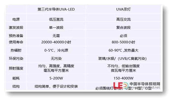 此外,對(duì)比現(xiàn)在市面上較常用的UVA汞燈,同樣是光催化殺菌技術(shù),UVA-LED燈則具有眾多優(yōu)勢(shì),如效率高,壽命長(zhǎng);維護(hù)簡(jiǎn)單,運(yùn)行費(fèi)用低;無(wú)污染,無(wú)毒,衛(wèi)生安全,環(huán)境友好。