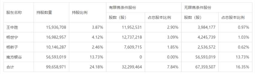 截至目前,王中勝及其一致行動(dòng)人楊世寧、楊新子、南方銀谷科技有限公司(以下簡(jiǎn)稱(chēng)“南方銀谷”)的持股情況如下: