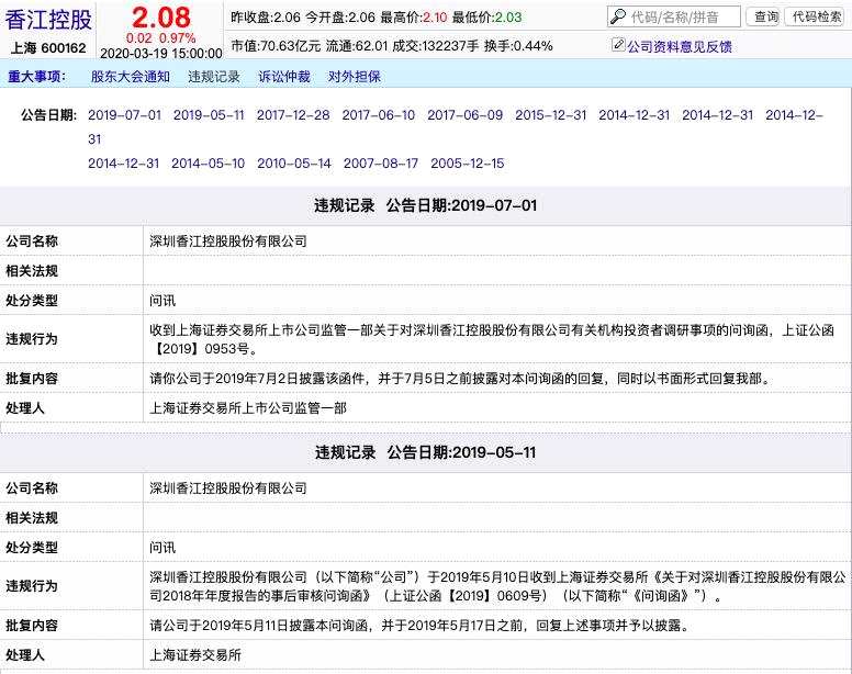 截圖來源新浪財經(jīng)香江控股頁面