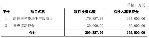 根據(jù)3月6日,新易盛披露的2020年度非公開發(fā)行股票預(yù)案,擬非公開發(fā)行股票預(yù)計募集資金總額不超過 16.5億元(含),扣除發(fā)行費用后的募集資金凈額將用于高速率光模塊生產(chǎn)線項目13.5億元和補(bǔ)充流動資金3億元。