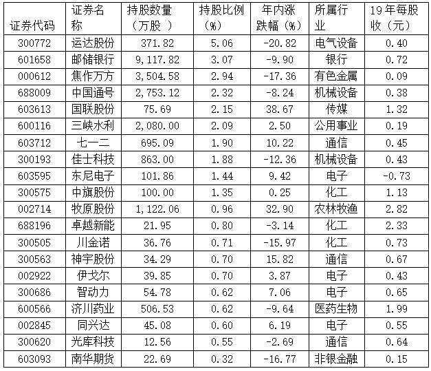 具體看,券商去年四季度新進(jìn)的13家公司分別是光庫(kù)科技(300620)、卓越新能、南華期貨(603093)、【神宇股份(300563)、股吧】(300563)、川金諾(300505)、伊戈?duì)枺?02922)、同興達(dá)(002845)、智動(dòng)力(300686)、濟(jì)川藥業(yè)(600566)、七一二(603712)、牧原股份(002714)、三峽水利(600116)、郵儲(chǔ)銀行(601658)。