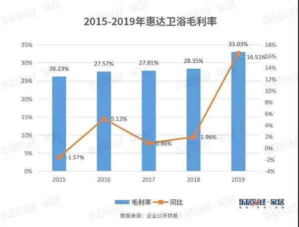 近日,國內(nèi)衛(wèi)浴龍頭惠達衛(wèi)浴(603385)發(fā)布2019年度年度報告:實現(xiàn)營業(yè)收入32.10億元,較上年同期增長10.70%;實現(xiàn)歸屬于上市公司股東的凈利潤3.29億元,較上年同期增長37.78%;歸母扣非后凈利潤2.73億元,同比增長31.06%;毛利率為33.03%,同比增加4.68個百分點。