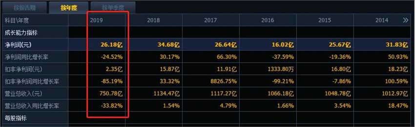 3月的最后一天,上市公司TCL科技(000100)發(fā)布2019年度報告,打破了公司連續(xù)5年營收超過千億的規(guī)模。公司實現(xiàn)營業(yè)收入749.33億元,同比下滑33.90%;實現(xiàn)歸屬于上市公司股東的凈利潤為26.18億元,同比下滑24.52%;實現(xiàn)扣除非經常性損益后歸屬于上市公司股東的凈利潤為2.35億元,同比下滑85.19%。
