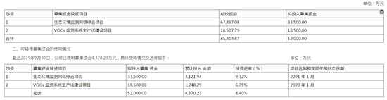 不過根據(jù)最新的10月30日公告顯示,截止2019年9月30日雪迪龍僅使用募集資金4370.23萬元,其中建設(shè)生態(tài)環(huán)境監(jiān)測(cè)網(wǎng)絡(luò)綜合項(xiàng)目、VOCs監(jiān)測(cè)系統(tǒng)生產(chǎn)線建設(shè)項(xiàng)目分別累計(jì)投入3121.94萬元、1248.29萬元,分別完成投資進(jìn)度9.32%、6.75%。