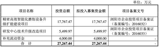 宇環(huán)數(shù)控上市時披露的公告書顯示,公司上市發(fā)行股份數(shù)量為2500萬股,募集資金總額為3.20億元,扣除發(fā)行費用后募集資金凈額為2.73億元,分別用于精密高效智能化磨削設(shè)備升級擴能建設(shè)項目、研發(fā)中心技術(shù)升級改造項目、補充流動資金。