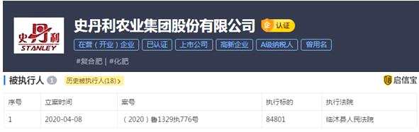 史丹利農(nóng)業(yè)集團(tuán)新增被執(zhí)行人信息