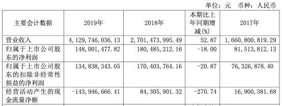 上市首年,移遠通信出現了增收不增利的情況。4月14日晚間,公司披露的年報顯示,2019年,公司實現營業(yè)收入41.30億元,比上年增長52.87%;實現歸屬于上市公司股東的凈利潤1.48億元,比上年減少18.00%;實現歸屬于上市公司股東的扣除非經常性損益的凈利潤1.35億元,比上年減少20.87%;經營活動產生的現金流量凈額為-1.44億元,比上年減少270.74%;主營業(yè)務無線通信模組行業(yè)毛利率為21.15%,比上年增加0.75個百分點。