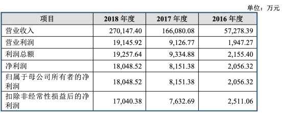據上市招股說明書,2016年至2018年,移遠通信的營業(yè)收入分別為5.73億元、16.61億元、27.01億元;歸屬于母公司所有者的凈利潤分別為2056.32萬元、8151.38萬元、1.80億元;扣除非經常性損益后的凈利潤分別為2511.06萬元、7632.69萬元、1.70億元;經營活動產生的現金流量凈額分別為-5388.04萬元、1690.04萬元、8430.59萬元。
