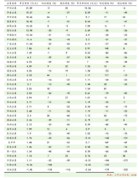 與2月份相比,海通證券和國信證券跌出業(yè)績前五。尤其是海通證券,3月份實現(xiàn)營收6.03億元,環(huán)比下降69%,同比下降67%;實現(xiàn)凈利潤7億元,環(huán)比下降20%,同比下降38%。3月份的營收排名也從2月份的第4名降至第13名,下滑9名,海通證券并沒有在公告中披露業(yè)績下滑的原因。