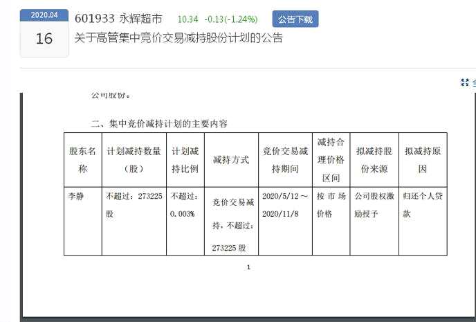 贏家財(cái)富網(wǎng)注意到,4月16日,永輝超市披露關(guān)于高管減持的公告。