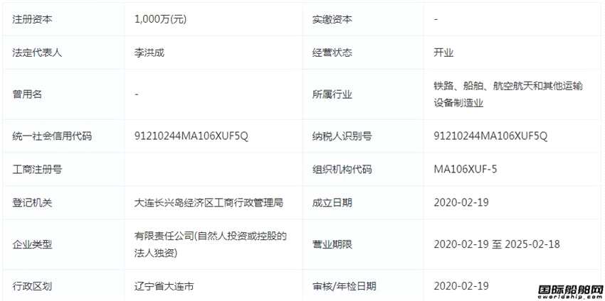 天眼查資料顯示,大連船舶重工集團(tuán)長(zhǎng)興島船舶工程有限公司成立于2020年2月19日,唯一投資人是大船集團(tuán),公司注冊(cè)資本1000萬(wàn)元,法定代表人為李洪成。而據(jù)