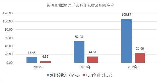 具體來看,2019年智飛生物實(shí)現(xiàn)營業(yè)總收入105.87億元,同比增長102.50%;實(shí)現(xiàn)歸屬于母公司股東的凈利潤23.66億元,同比增長63.05%;實(shí)現(xiàn)扣非歸母凈利23.88億元,同比增長63.70%。報(bào)告期內(nèi),公司經(jīng)營活動(dòng)產(chǎn)生的現(xiàn)金流量凈額為13.67億元,同比增長133.44%,研發(fā)投入為2.59億元,同比增長52.73%。