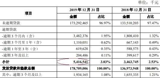 截至2019年末,青農(nóng)商行逾期貸款合計54.17億元,上年同期為34.64億元;其中,逾期3個月內(nèi)(含)貸款為34.82億元,逾期3個月至1年(含)貸款為11.10億元,逾期1年至3年(含)貸款為6.20億元,逾期3年及以上貸款為2.04億元。