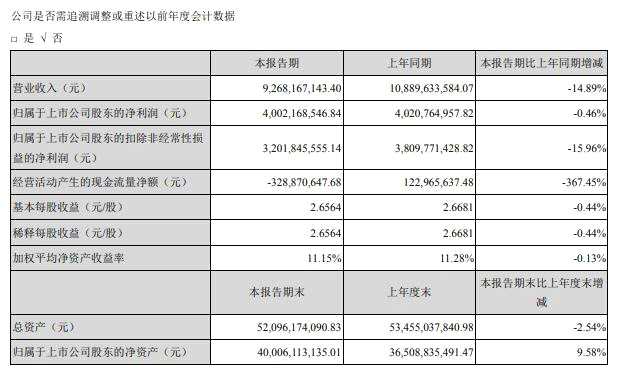同日披露的2020年一季度報(bào)告顯示,今年一季度,洋河股份實(shí)現(xiàn)營收92.68億元,同比下滑14.89%;歸屬于上市公司股東的凈利潤為40.02億元,同比微降0.46%;歸屬于上市公司股東的扣除非經(jīng)常性損益的凈利潤為32.02億元,同比下降15.96%。