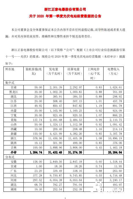 總裝機(jī)3.76GW!正泰電器2020年Q1光伏電站經(jīng)營(yíng)數(shù)據(jù)