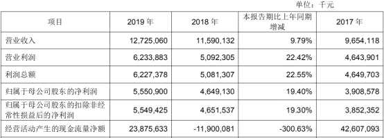 互聯(lián)網(wǎng)北京4月30日訊(記者田云緋華青劍)4月29日,成都銀行(601838)(601838.SH)披露了2019年年度報(bào)告。2019年,成都銀行實(shí)現(xiàn)營(yíng)業(yè)收入127.25億元,同比增長(zhǎng)9.79%;歸屬于母公司股東的凈利潤(rùn)55.51億元,同比增長(zhǎng)19.40%;歸屬于母公司股東的扣除非經(jīng)常性損益后的凈利潤(rùn)55.49億元,同比增長(zhǎng)19.30%;經(jīng)營(yíng)活動(dòng)產(chǎn)生的現(xiàn)金流量?jī)纛~238.76億元,上年同期為-119.00億元。