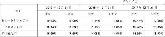 在資本充足率方面,截至2019年末,成都銀行的核心一級(jí)資本充足率為10.13%,較上年末下降1.01個(gè)百分點(diǎn);一級(jí)資本充足率為10.14%,較上年末下降1.01個(gè)百分點(diǎn);資本充足率為15.69%,較上年末上升1.61個(gè)百分點(diǎn)。