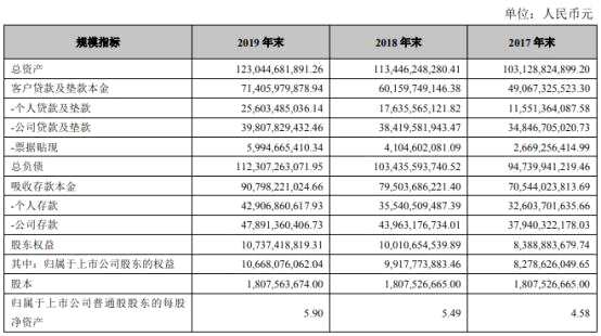 2017年末、2018年末、2019年末,張家港行總資產(chǎn)分別為1031.29億元、1134.46億元、1230.45億元,其中,客戶貸款及墊款本金分別為490.67億元、601.60億元、714.06億元。張家港行總負(fù)債分別為947.40億元、1034.36億元、1123.07億元,其中,吸收存款本金分別為705.44億元、795.04億元、907.98億元。