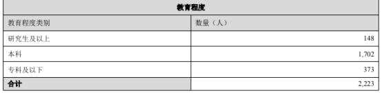 在職員工中,研究生及以上148人,本科1702人,??萍耙韵?73人。