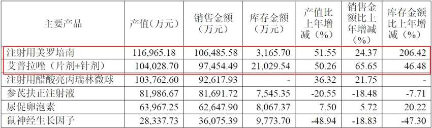 但我們從庫(kù)存金額角度能夠看到,公司主要產(chǎn)品“注射用美羅培南”、“艾普拉唑(片劑+針劑)”、“尿促卵泡素”的庫(kù)存金額在不斷增加,也能夠間接反映出來(lái)上述三款產(chǎn)品的庫(kù)存量呈現(xiàn)增加趨勢(shì),特別是“注射用美羅培南”的庫(kù)存量增加較大。
