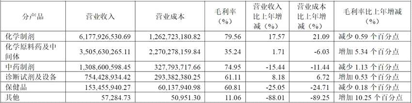 主營(yíng)產(chǎn)品營(yíng)收增速不及成本 一半江山的“化學(xué)制劑 ”毛利率下滑
