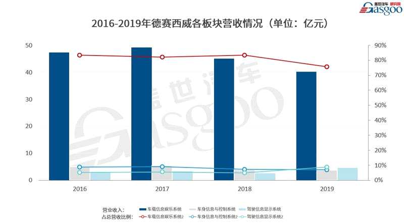 據(jù)全球知名市場(chǎng)調(diào)查機(jī)構(gòu)IHS發(fā)布的報(bào)告顯示,2019年德賽西威的信息娛樂(lè)系統(tǒng)產(chǎn)品銷量排名全球第15名,在國(guó)內(nèi)自主品牌排名第1名。盡管如此,與前幾年相比該業(yè)務(wù)板塊卻在走下坡路,到2019年?duì)I收已跌至2016年以來(lái)最低水平。
