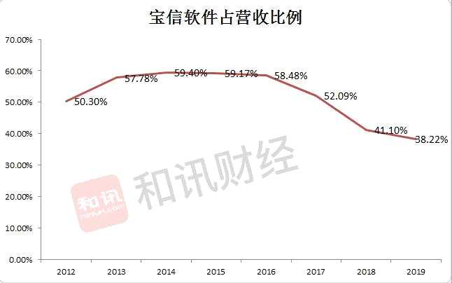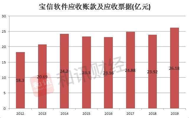 我們統(tǒng)計(jì)寶信軟件近八年的年報(bào)數(shù)據(jù)顯示,2012年-2019年間,公司的應(yīng)收賬款及應(yīng)收票據(jù)持續(xù)高企,分別為18.3億元、20.69億元、24.2億元、23.3億元、23.16億元、24.88億元、23.92億元和26.18億元,占同期營(yíng)業(yè)收入的比例分別為50.3%、57.78%、59.4%、59.17%、58.48%、52.09%、41.1%、38.22%。
