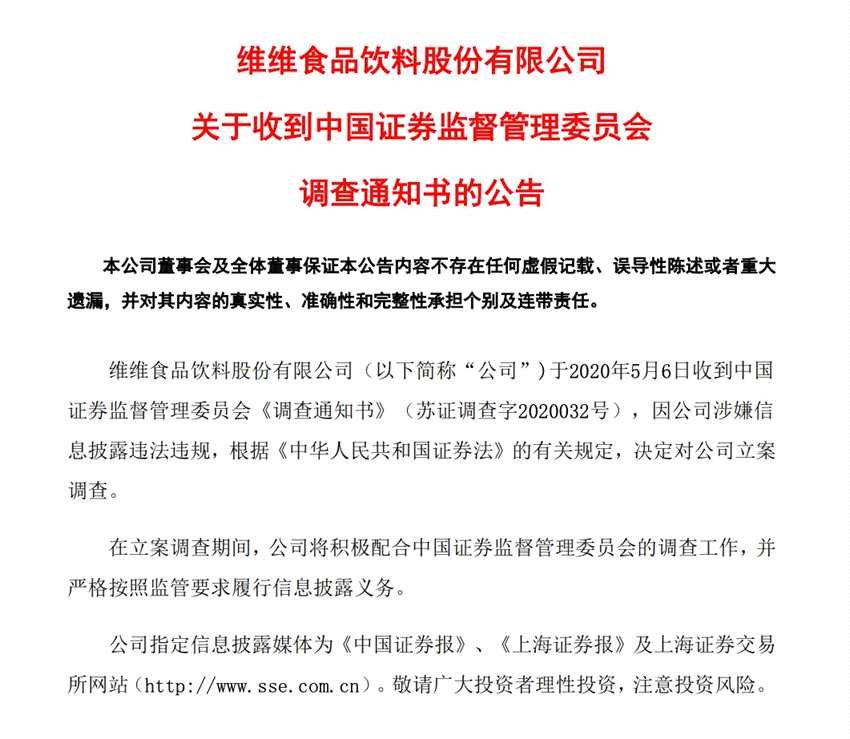 摘要: 5月6日晚間,“豆奶粉大王”維維股份(600300)發(fā)布公告表示,公司于5月6日收到中國證券監(jiān)督管理委員會《調(diào)查通知書》,因涉嫌信息披露違法違規(guī),決定對公司立案調(diào)查。而就在今年3月24日,公司曾在回復(fù)