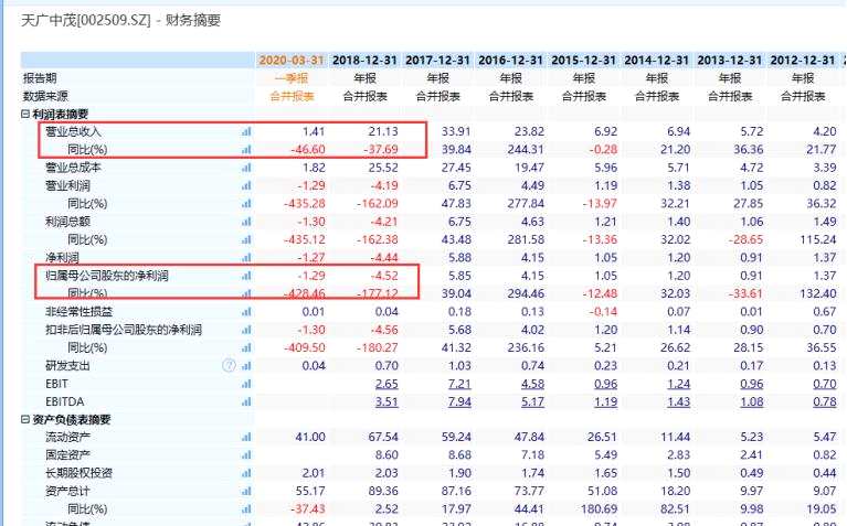 業(yè)績(jī)巨虧。天廣中茂今年1月份發(fā)布業(yè)績(jī)預(yù)告修正公告,預(yù)計(jì)其2019年度虧損21.58億元至30.47億元,與2018年同期相比凈利潤(rùn)變動(dòng)幅度為-60%至-30%。