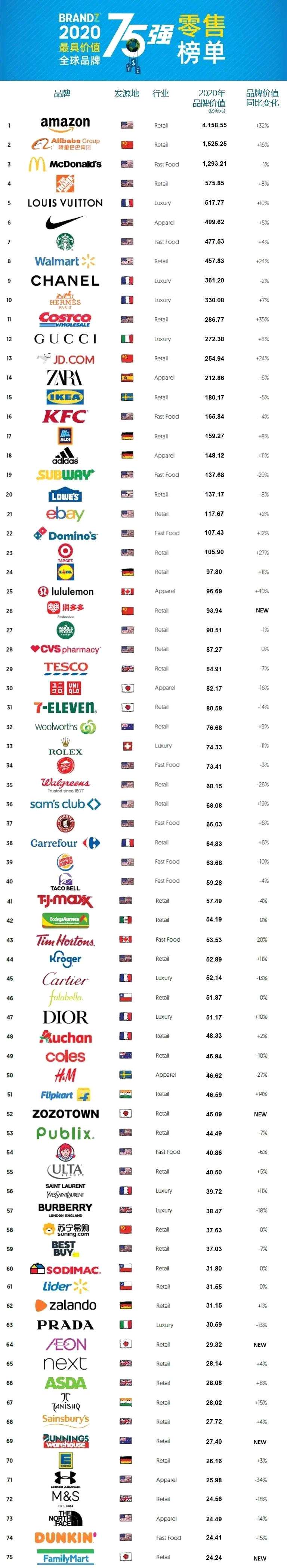 摘要: 5月11日消息,凱度與WPP集團(tuán)近日聯(lián)手發(fā)布了2020年BrandZ全球零售品牌75強(qiáng)榜單。據(jù)悉,今年上榜品牌的總價值在過去一年里增長了12%,達(dá)到了15000億美元。