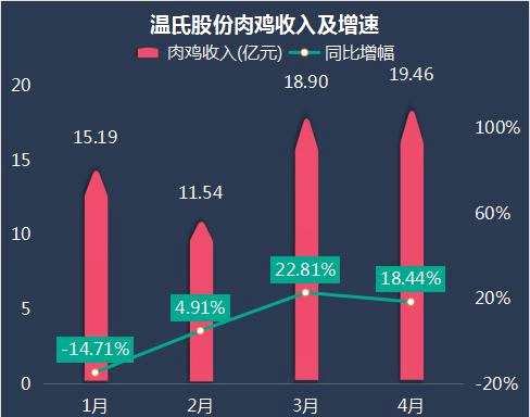 今年前四個月公司肉雞銷售收入65.09億元,同比增7.36%。