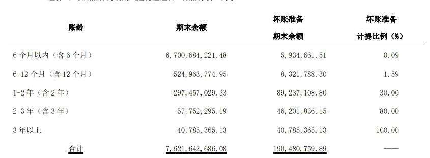 報(bào)告期內(nèi),藍(lán)色光標(biāo)應(yīng)收賬款期末余額共計(jì)76.22億元,壞賬準(zhǔn)備期末余額1.90億元,其中6個(gè)月內(nèi)(含6個(gè)月)應(yīng)收賬款67.01億元,壞賬準(zhǔn)備期末余額593.47萬(wàn)元,計(jì)提比例0.09%;6-12個(gè)月(含12個(gè)月)應(yīng)收賬款5.25億元,壞賬準(zhǔn)備期末余額832.18萬(wàn)元,計(jì)提比例1.59%;1-2年(含2年)應(yīng)收賬款2.97億元,壞賬準(zhǔn)備期末余額8923.71萬(wàn)元,計(jì)提比例30.00%;2-3年(含3年)應(yīng)收賬款5775.23萬(wàn)元,壞賬準(zhǔn)備期末余額4620.18萬(wàn)元,計(jì)提比例80.00%;3年以上應(yīng)收賬款4078.54萬(wàn)元,壞賬準(zhǔn)備期末余額4078.54萬(wàn)元,計(jì)提比例100.00%.