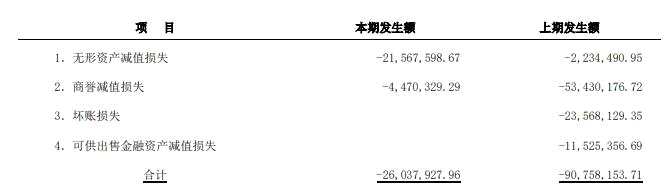 年報(bào)顯示,截至2019年12月31日止,藍(lán)色光標(biāo)商譽(yù)原值51.98億元,商譽(yù)減值金額2.96億元,凈額為49.02億元,使用壽命不確定的無(wú)形資產(chǎn)9.88億元,合并占資產(chǎn)總額30.91%。報(bào)告期內(nèi),公司資產(chǎn)減值損失合計(jì)2603.79萬(wàn)元,其中無(wú)形資產(chǎn)減值損失2156.76萬(wàn)元,商譽(yù)減值損失447.03萬(wàn)元。