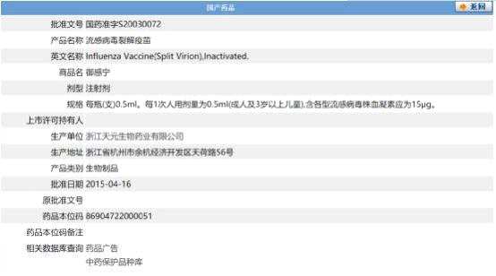 根據(jù)公告內(nèi)容,流感病毒裂解疫苗主要用于刺激機體產(chǎn)生抗流行性感冒病毒的免疫力,預防本毒株引起的流行性感冒。本次為公司原有產(chǎn)品再次注冊,產(chǎn)品再注冊費用為2.49萬元。浙江天元生產(chǎn)的流感疫苗為三價流感疫苗,根據(jù)米內(nèi)網(wǎng)數(shù)據(jù)統(tǒng)計顯示,2018年中國流感病毒裂解疫苗折算批簽發(fā)額為4.82億元,2019年中國流感病毒裂解疫苗折算批簽發(fā)額為9.67億元,較2018年增長101%。