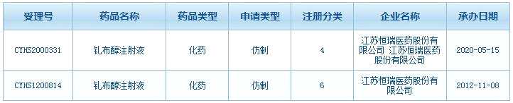 恒瑞釓布醇注射液注冊申請情況