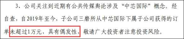 “自2019年至今,三磨所從中芯國(guó)際下屬子公司獲得的訂單未超過(guò)1萬(wàn)元。”該公司表示。