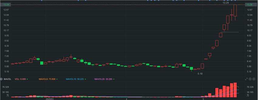 自5月5日中芯國(guó)際宣布擬在科創(chuàng)板上市以來(lái),軸研科技在10個(gè)交易日里收獲9個(gè)漲停板,期間股價(jià)累計(jì)漲幅達(dá)139%,從5.57元/股一路飆升到13.29元/股。