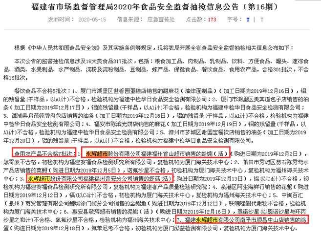 上述不合格批次中,包括永輝超市銷售的食用農(nóng)產(chǎn)品。